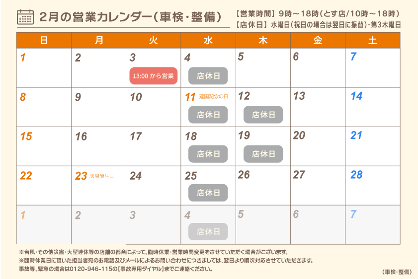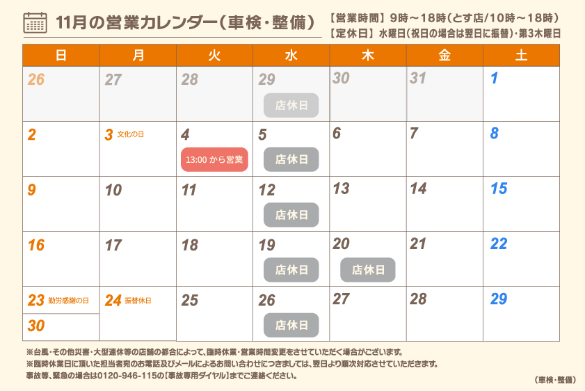 0800-832-5338予約済の方、オイル交換・1年点検・修理等