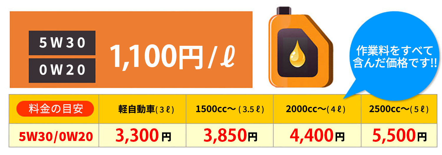 ※ 上記は、オイル代・作業料を含んだ料金になります。